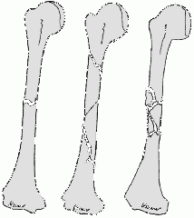 Tegning av ulike bruddtyper for en rørknokkel (her: leggbenet). Illustrasjon: Kjell Heuser.